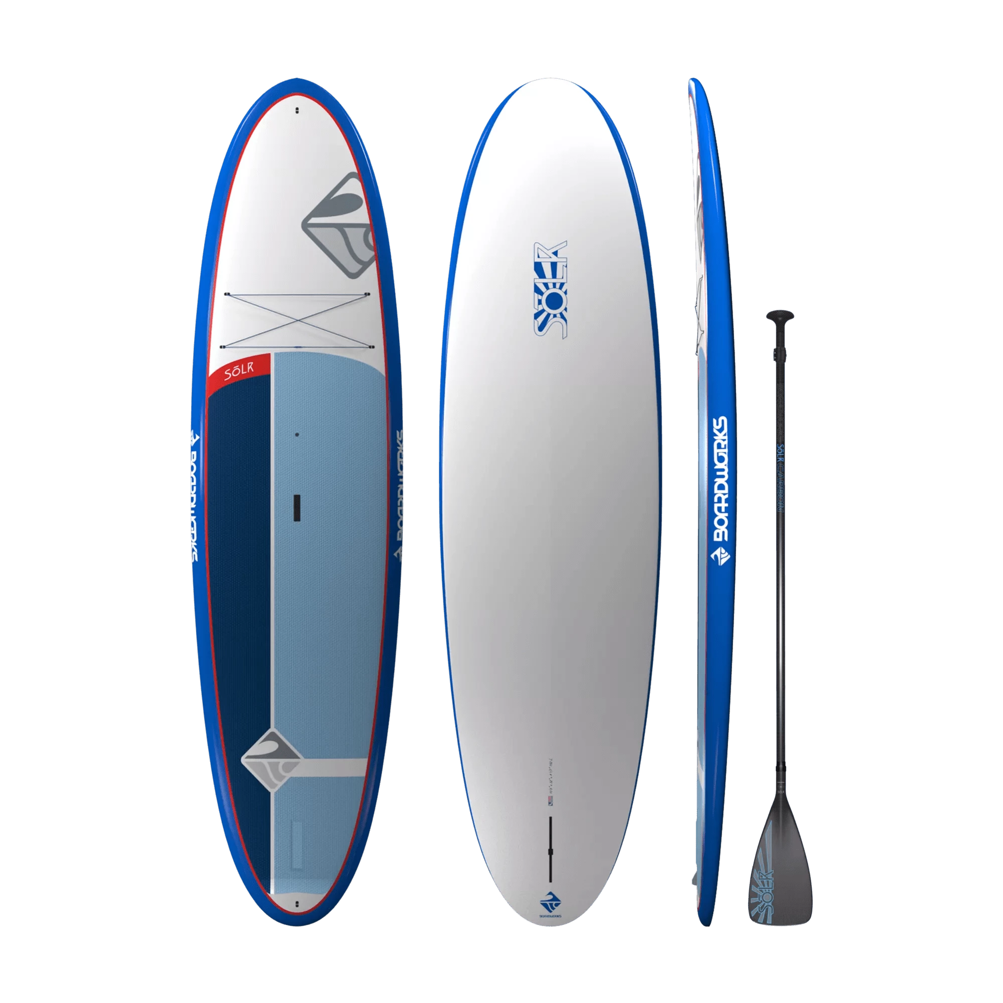 The Solr is the perfect hard paddle board for beginners who want to learn to paddle and explore the waters. Our ultra-comfortable honeycomb heat-embossed deck pad offers the highest level of traction without the usual water retention of brushed open foam traction pads. This SUP comes with one of our custom full carbon fiber 2-piece adjustable paddles, so you can immediately jump into the water.